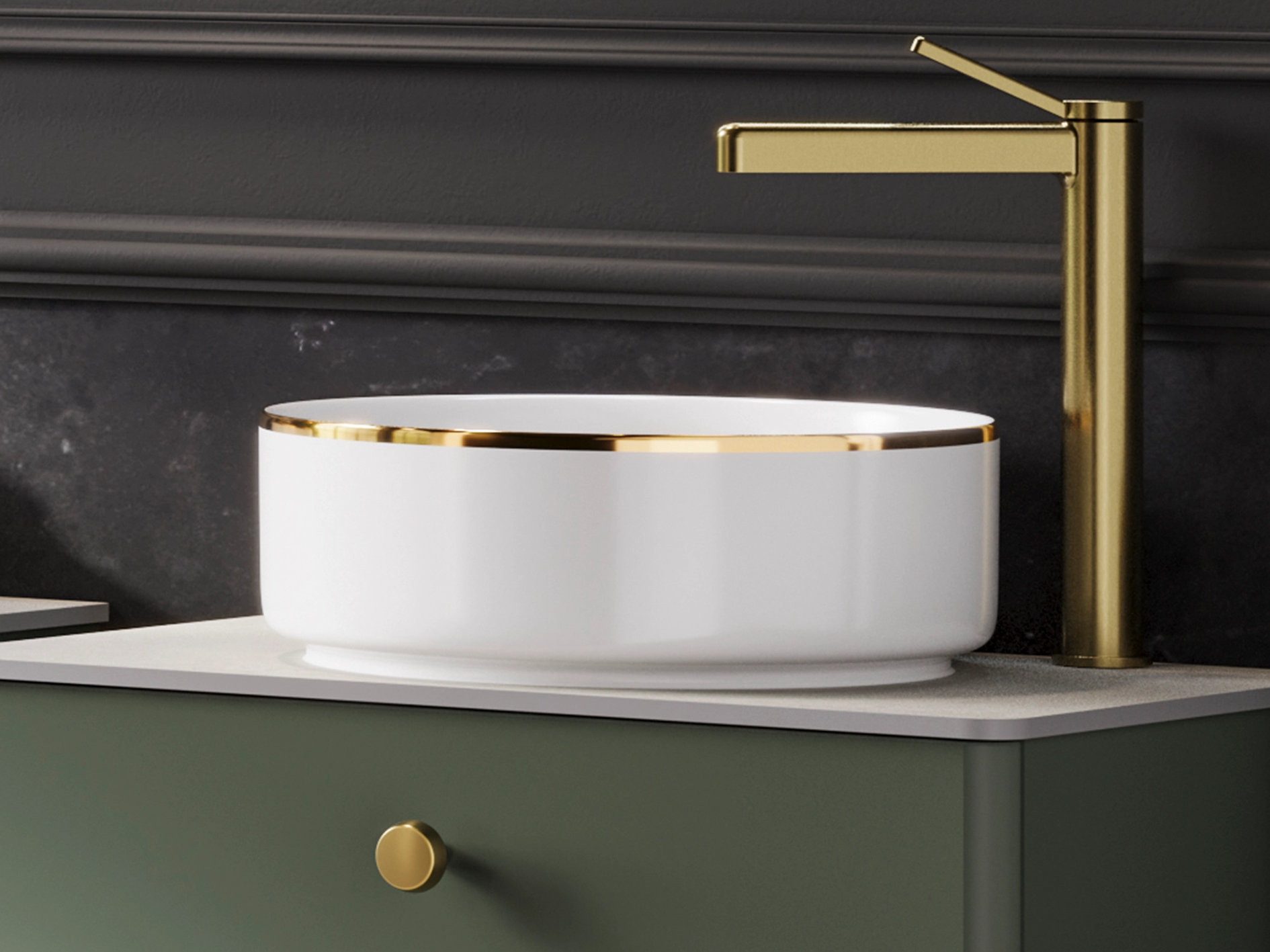 Hib - Ceramic Vessel Basin - Metallic Edge Gold