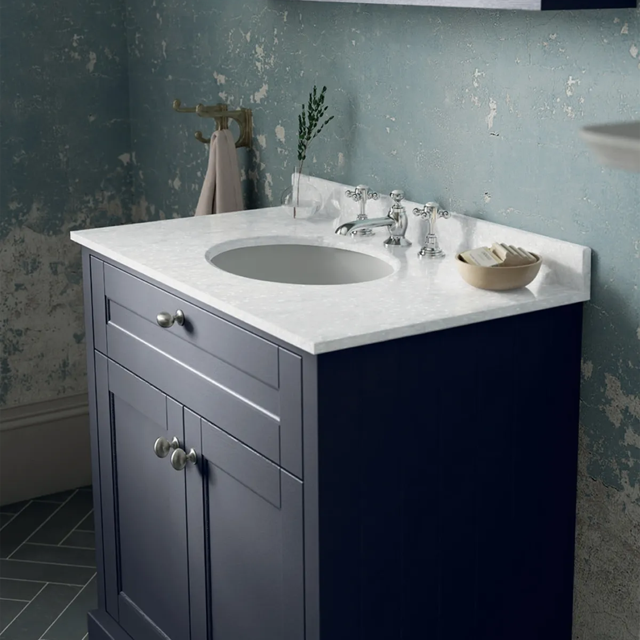 600mm - Fully fluted design, ideal for creating a truly stunning art deco inspired bathroom. Stunning satin finish. Finger pull handle design. Soft-close doors and drawers ensures peace ensues throughout...