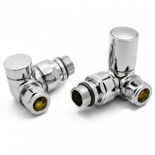 Kartell 15Mm Angled Radiator Valve With Galaxy Lockshield - Chrome And White
