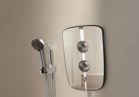 - The electric shower unit with mirror finish and lighting strip indicator