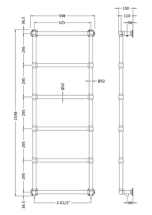 (Please note: Valves are sold separately. We recommend pipework is not installed until receipt of the radiator or heated towel rail.)