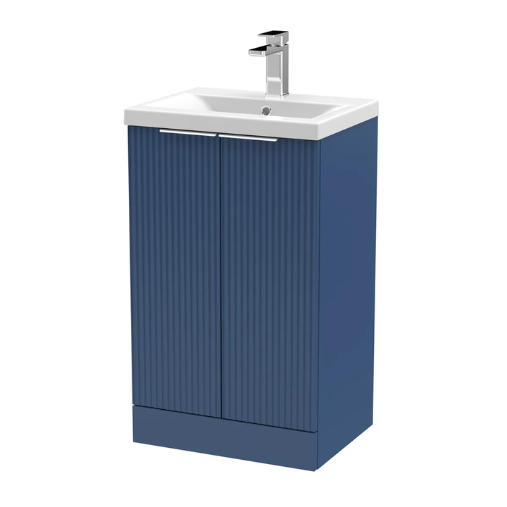 Fully fluted design ideal for creating a truly stunning art deco inspired bathroom. Stunning satin finish. Finger pull handle design. Soft-close doors and drawers ensures peace ensues throughout your home. Supplied rigid for easy installation. Ceramic basin pre-drilled with one tap hole. (500mm)