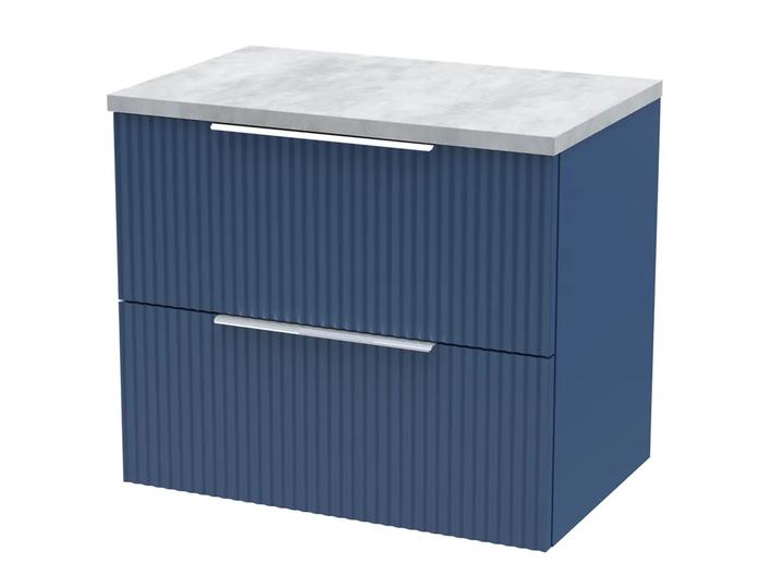 Fully fluted design, ideal for creating a truly stunning art deco inspired bathroom. Stunning satin finish. Finger pull handle design. Soft-close doors and drawers ensures peace ensues throughout your home. Supplied rigid for easy installation. Laminate worktop for use with vessel basin (sold separately).