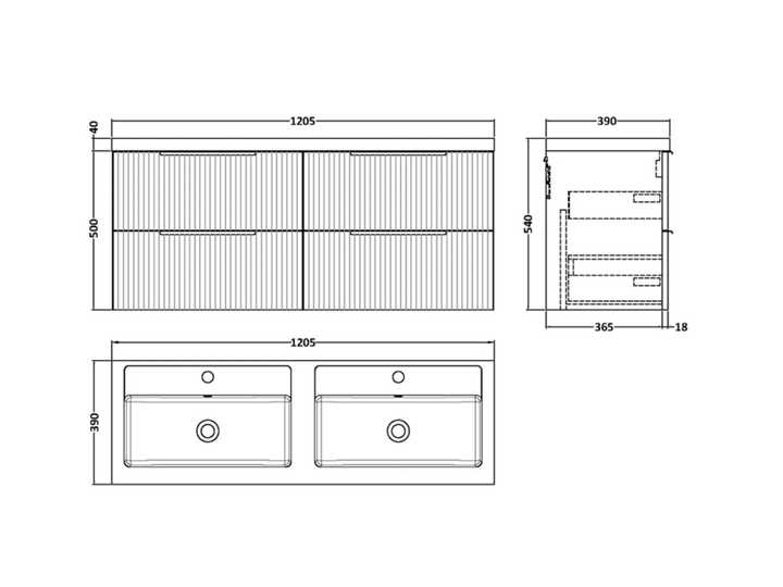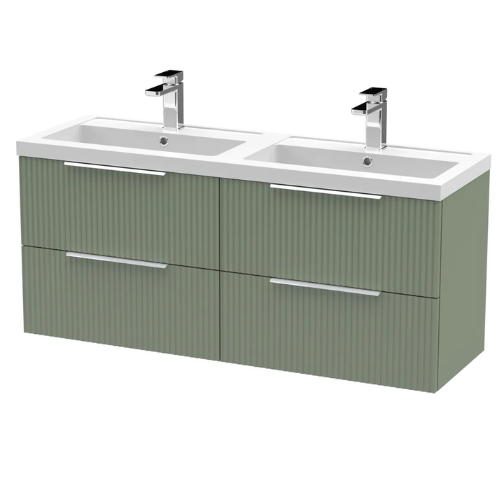 Fully fluted design, ideal for creating a truly stunning art deco inspired bathroom. Stunning satin finish. Finger pull handle design. Soft-close doors and drawers ensures peace ensues throughout your home. Supplied rigid for easy installation. Double polymarble basin pre-drilled with two tap holes.1200mm