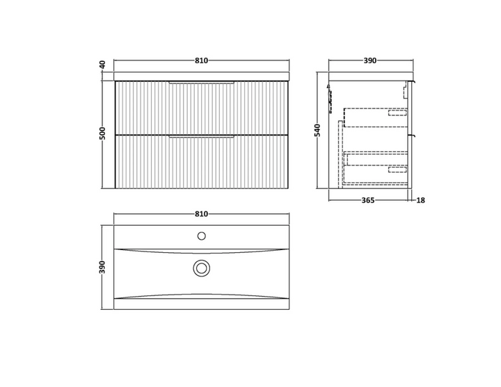 Fully fluted design, ideal for creating a truly stunning Art Deco inspired bathroom. This wall-hung unit creates more space in your bathroom giving the illusion of a bigger room. This unit has soft-close drawers which limits the daily wear and tear and provides a quieter closing action. Colour co-ordinate your unit with a WC unit. Supplied with laminate worktop, for use with vessel basin (sold separately). (800mm)
