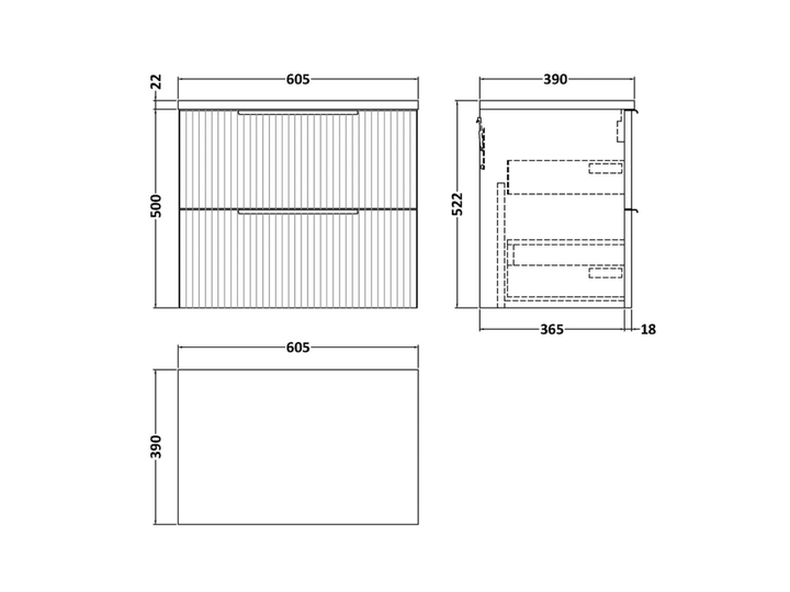 Fully fluted design, ideal for creating a truly stunning art deco inspired bathroom. Stunning satin finish. Finger pull handle design. Soft-close doors and drawers ensures peace ensues throughout your home. Supplied rigid for easy installation. Laminate worktop for use with vessel basin (sold separately)600mm