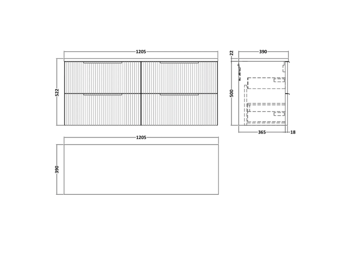 Fully fluted design, ideal for creating a truly stunning Art Deco inspired bathroom. This wall-hung unit creates more space in your bathroom giving the illusion of a bigger room. This unit has soft-close drawers which limits the daily wear and tear and provides a quieter closing action. Colour co-ordinate your unit with a WC unit. Supplied with laminate worktop, for use with vessel basin (sold separately).