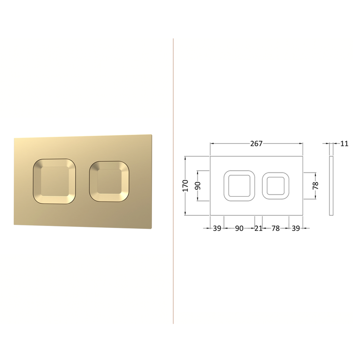 Add a touch of modern luxury to your bathroom with the Geometric Dual Flush Plate in an elegant brushed gold finish. Featuring distinctive square push buttons set within a sleek rectangular frame, this design brings a bold, architectural edge that perfectly complements contemporary interiors.