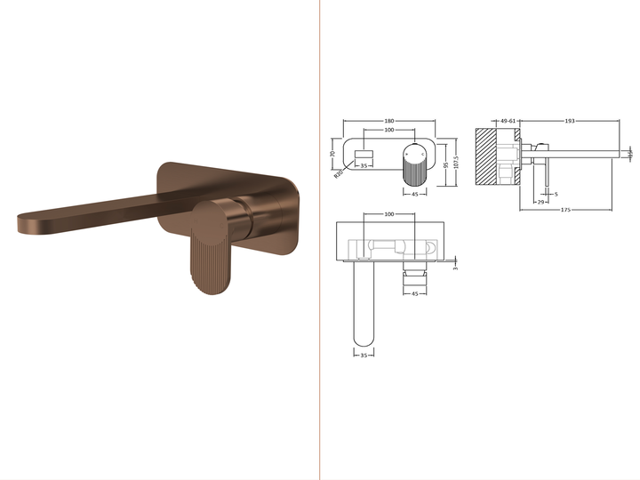 Nuie - Wall Mounted Basin Mixer Tap with Plate - Brushed Bronze