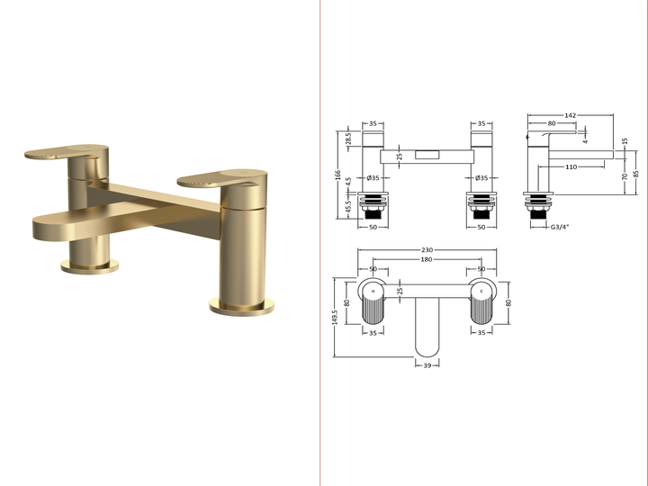 Nuie - Cyprus Bath Filler Tap - Brushed Brass