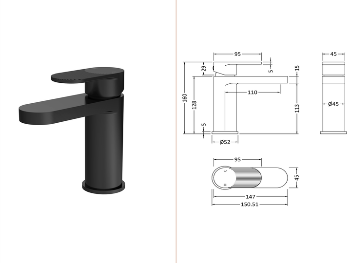 Nuie - Cyprus / Binsey Fluted Mono Basin Mixer Tap - P/B Waste