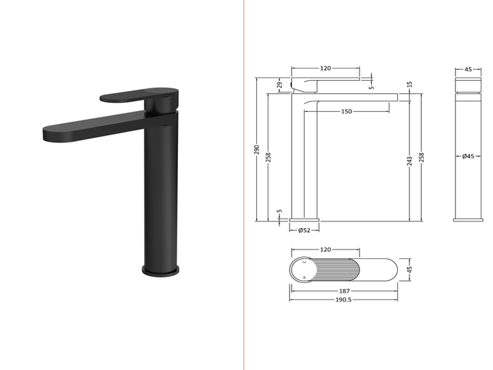 Nuie - High Rise Mono Basin Mixer Tap - Matt Black