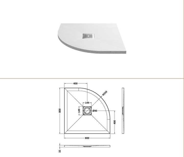 - Modern Aesthetic: The stunning slate textured finish in a sophisticated white colour instantly elevates the look of any modern bathroom. Its quadrant shape and slimline design (just 32mm high) create a minimalist and spacious feel, making it perfect for creating a clean and uncluttered shower area.