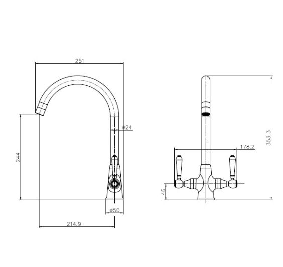 Introduce a touch of timeless elegance and exceptional functionality to your kitchen with the Reginox Elbe Traditional Kitchen Tap. This traditional swan neck kitchen tap, finished in brushed nickel, features twin white porcelain lever handles that exude classic charm. The Elbe tap is a stylish addition that will enhance any kitchen setting, blending seamlessly with both modern and traditional decor. Its easy-to-use levers require only a quarter turn for operation, and the spout swivels a complete 360°, offering unparalleled convenience for multi-bowl sinks and everyday kitchen tasks.