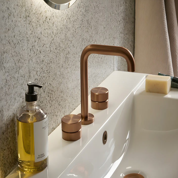 Elevate your bathroom with the sophisticated Faber 3 Tap Hole Basin Mixer, finished in luxurious brushed bronze. This premium tap combines contemporary design with exceptional functionality, creating a stunning focal point for your basin.