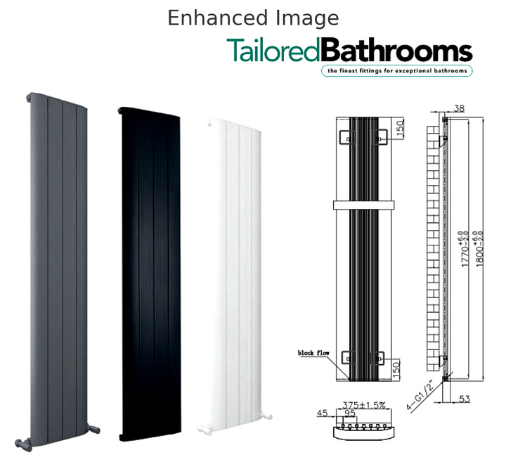 Taupo Black Aluminium Radiator 1800mm x 375mm | Tailored Bathrooms